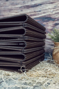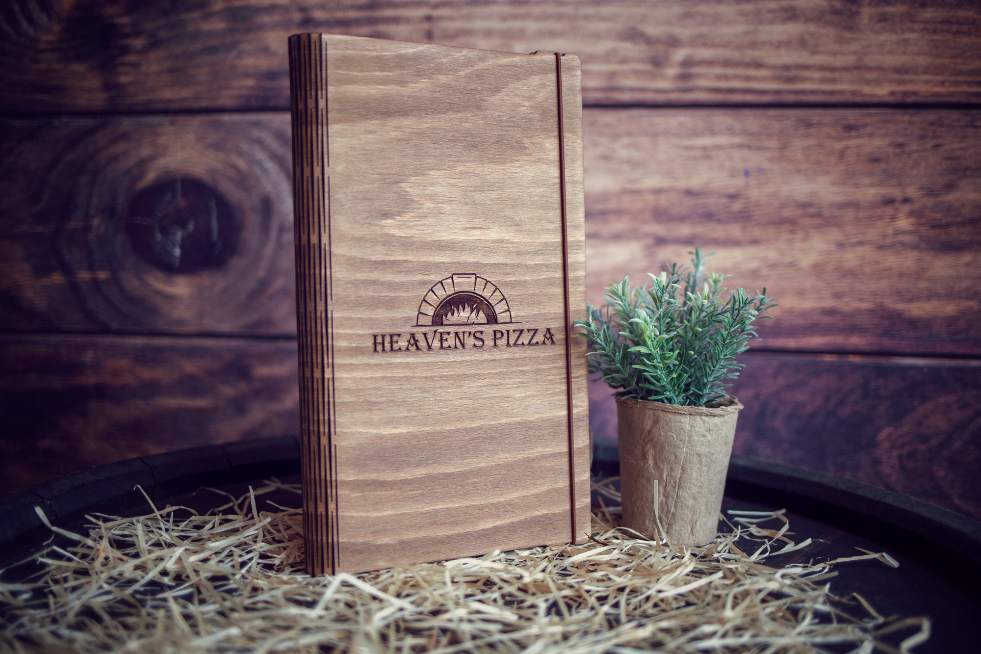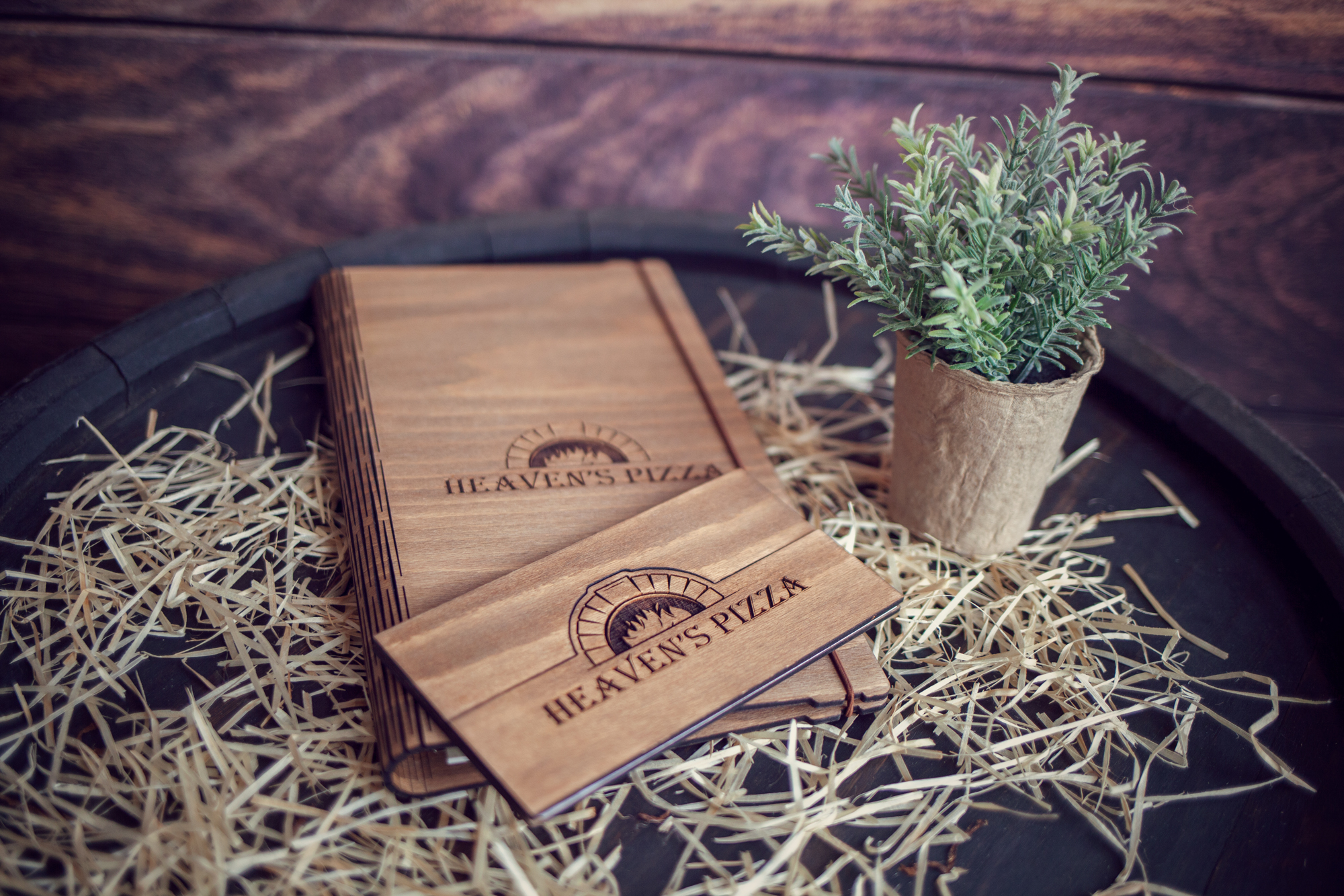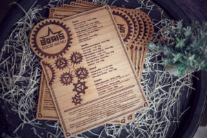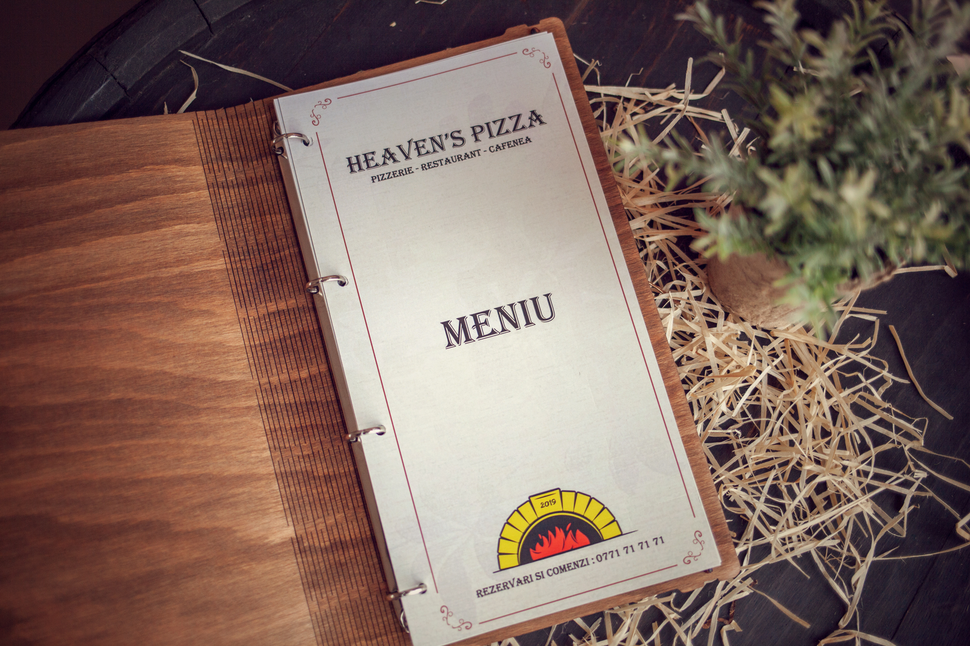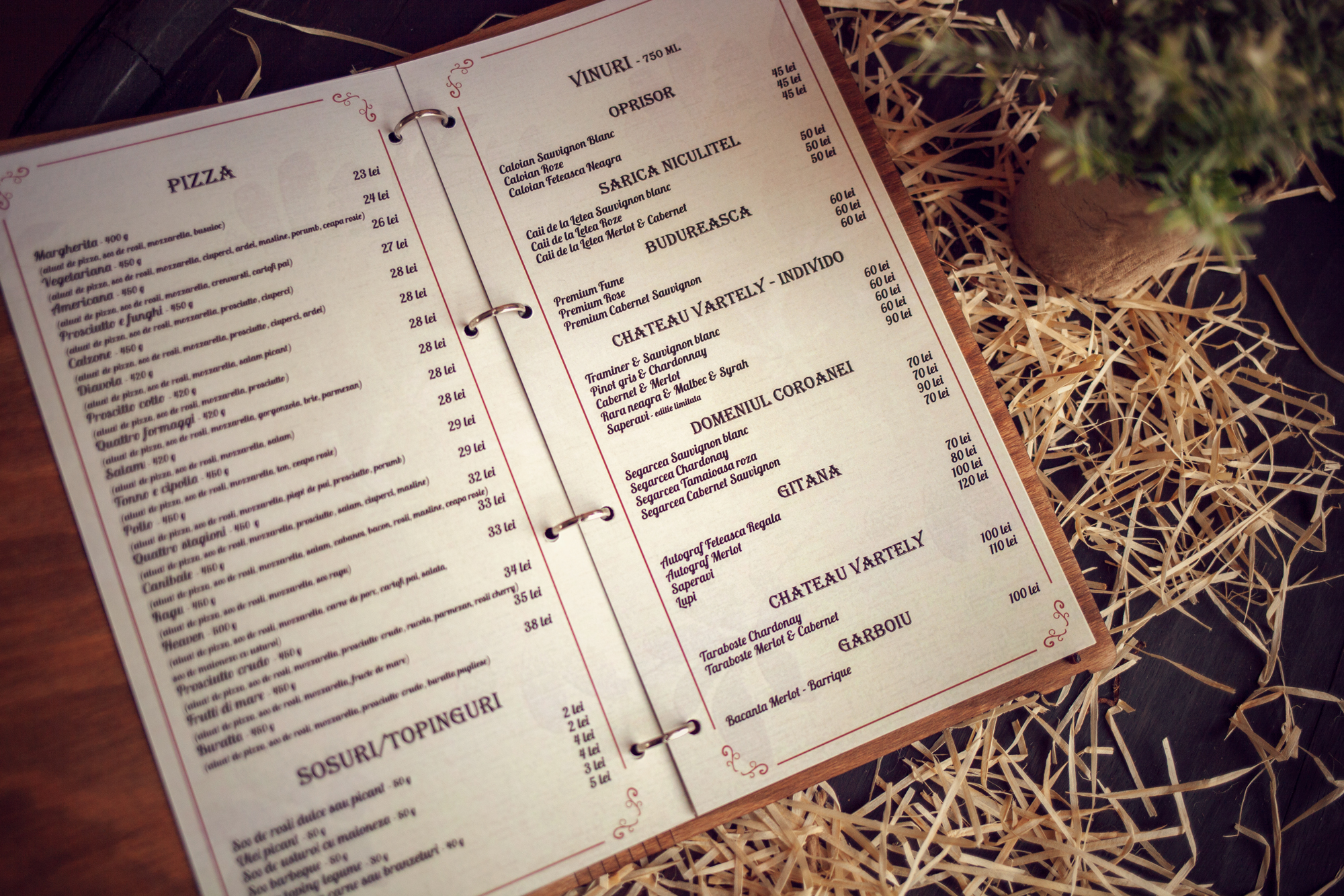 Meniuri cu coperti din lemn personalizate prin gravare cu sistem caiet mecanic, astfel se poate inlocui interiolrul ori de cate ori se doreste.