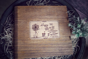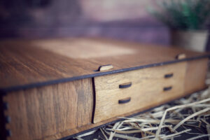 Cutie din lemn pentru album foto digital 30x30cm cu stick USB – model Papadie
