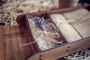 In primul comartiment se poate pune stick-ul de lemn alaturi de lavanda, iar in aldoilea compartiment se poate pune pachetul de fotografii 10 x 15 cm.